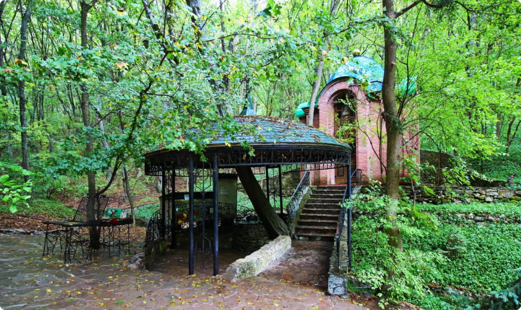 Чтобы попасть в пустынь Феодосия Кавказского, нужно пройти через туннель по буковому лесу. Впереди вам откроется умиротворённый вид на часовню, источник со святой водой и густой лес. Здесь всегда приятная прохлада, свежо и тихо — пустынь прекрасное место для того, чтобы побыть наедине с собой и природой.
