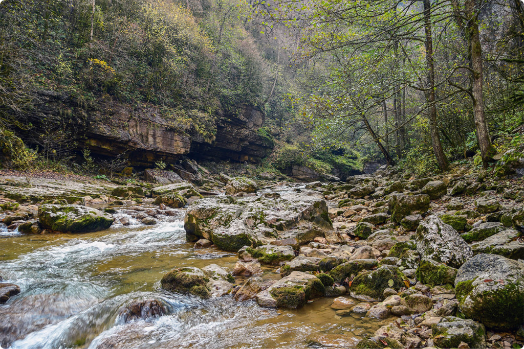 В каньоне открываются великолепные виды на горные склоны, самшитовые ущелья и бескрайний лес. Фото: guamka-kuban.ru