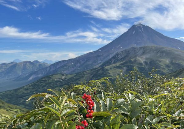 Уже по дороге — нереальные виды: повезло увидеть вулканы во всей красе! Этническое представление тоже с видом на вулканы, потом истории и лепёшки с чаем в традиционном жилище — всё в национальных костюмах, с настоящим погружением. Катались на собачьих упряжках и даже увидели камчатского медведя. Очень необычно, просто вау! Читать далее
