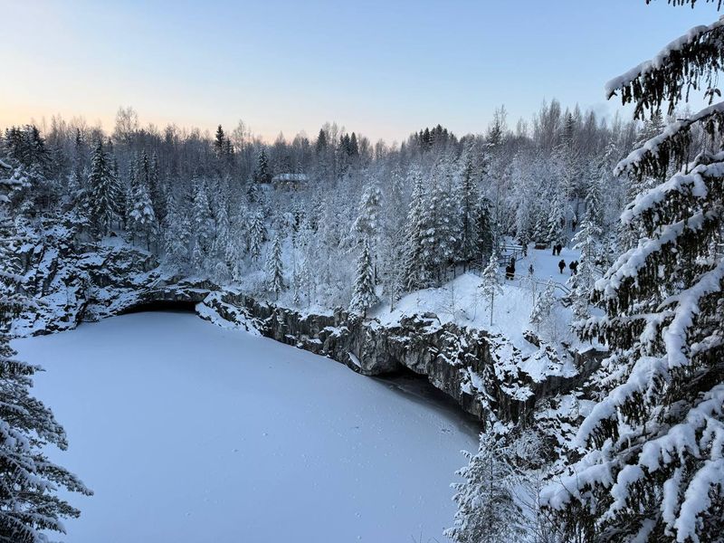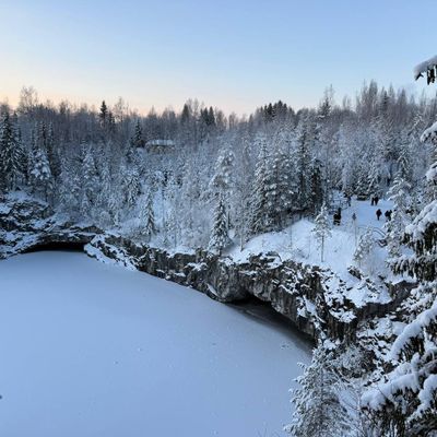 Зимние забавы в Карелии: ретропоезд, хаски, снегоходы и тайны Мраморного каньона