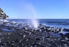 - Тихий океан и пляж из черного вулканического песка