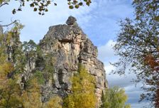 Садимся в заказанные машины и едем на хутор Яндык, что расположен прямо у подножия хребта Маярдак. Лесная дорожка ныряет вправо с трассы, идём по ней вдоль ЛЭП. Тут до скальников совсем недалеко. В одном месте тропа будет раздваиваться, левое ответвление поведёт на самые первые скальники, которые видны с автодороги. Правая же тропка выведет на небольшое понижение между останцами и побежит дальше за перевал, в долину речки Яндык. Обе тропы нас в любом случае выведут наверх. Но нас интересует вершина, высота которой 929 метров. Чтобы в полной мере насладиться красотой хребта, нужно начать с левой его оконечности и постепенно двигаться поверху, обходя по очереди все останцы, сложенные из красивых розовых и белых кварцев.