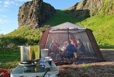 Очень трепетно отношусь к еде в туре. Ведь это главное правило туриста - "Взять побольше, увезти подальше и там съесть!" Поэтому категорически против супчиков быстрого приготовления. Еда должна быть вкусной! Подобное отношение и к лагерю. Полевая баня, столы, стулья, кровати - все для комфорта.