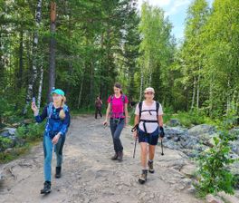 Тур действительно активный, в день проходили от 15 до 20 км. Подъем на 5 вершин (перепады высот 300-600 метров). 2 дня в туре посвящены городам (Сатка и Златоуст), когда ходишь поменьше, а в основном ездишь на микроавтобусе. Несмотря на дождливую погоду (дождь был почти каждый день) впечатления только положительные, гиды (Екатерина и Дмитрий) действительно знатоки своего дела. Готовы ответить и дать разъяснения по любому месту и поводу. Проживание в деревянных домиках, в комнатах на 2-3 человека. удобства внутри домика. У нас маршрут был скорректирован из-за закрытия одной из природных зон, поэтому мы также ночевали в Златоусте в гостинице. Несмотря на необходимость изменения маршрута Дмитрий нашёл очень достойную альтернативу - парк Таганай с восхождением к Перьям.