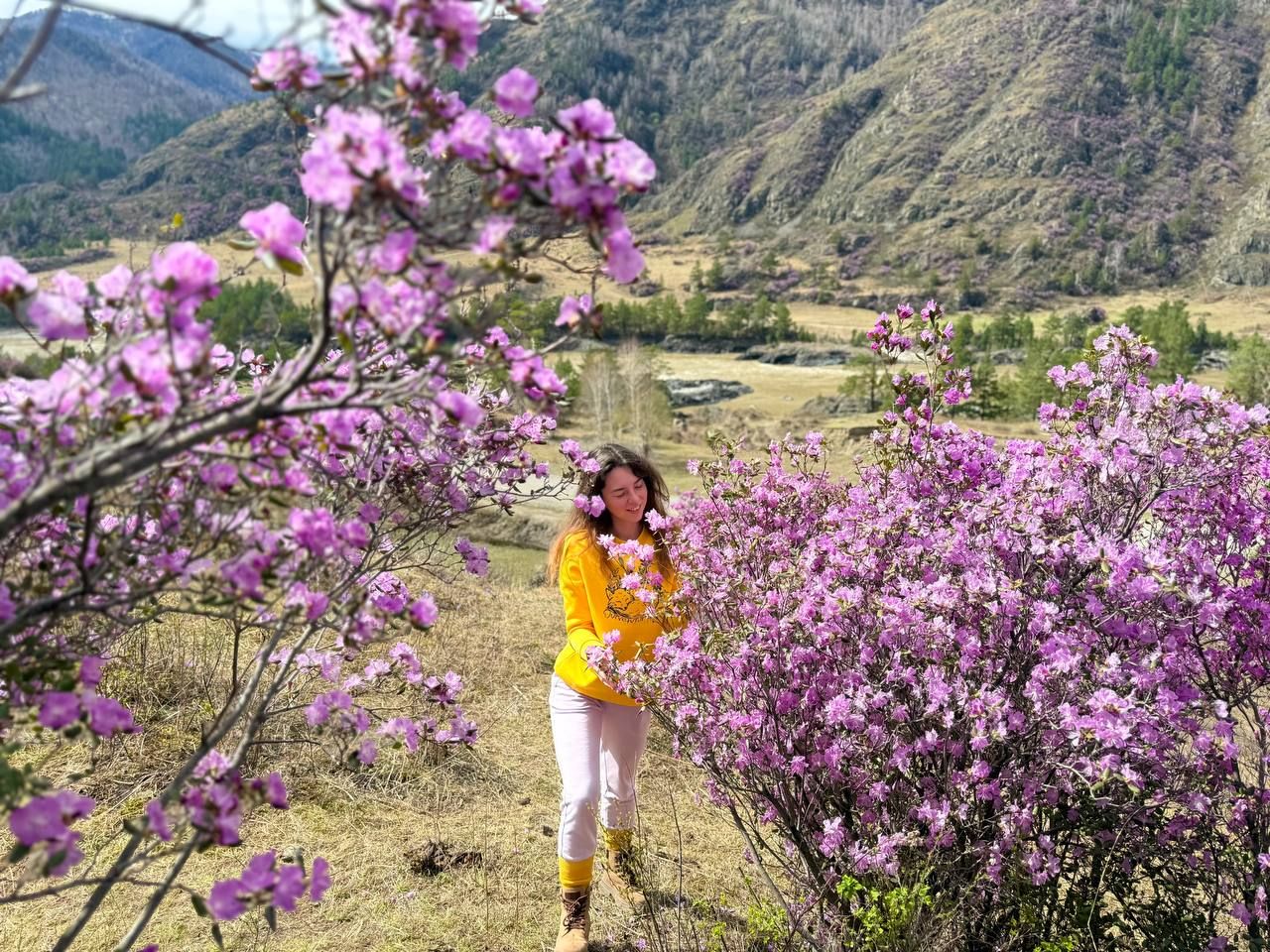 - Увидите цветение Алтайской сакуры, сделаете огромное количество восхитительных фотографий на фоне розово-лиловых горных хребтов