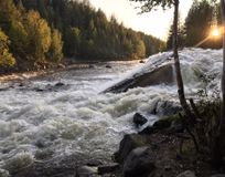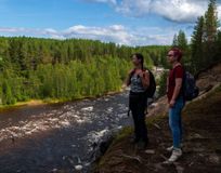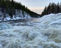 На следующий день мы поехали на юг к Белому морю. Женя изучает прогноз и принимает решение поменять маршрут. При тех порывах ветра, что были, покорение сопки явно было бы безумием. Поэтому добираемся до прекрасного леса и идем смотреть водопад. Зимний лес, внизу течет река, и только мы бредем по нему в прекрасной тишине. И вот он - водопад Колвица. Шум воды, завораживающий бег потока, река, убегающая вдаль, и кругом только природа и никого из людей.