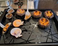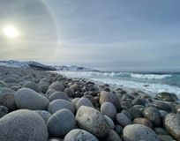 Следующий день встретил нас легким морозом, но безоблачным небом. Мы поехали в Териберку. Красное северное солнце неспеша вставало, освещая прекрасную тундру. За приятными разговорами дорога прошла незаметно. И вот она – Териберка. Конечно же Женя отвела нас попробовать дары моря. Я наконец-то отведала морского огурца, а подруга смогла сравнить морского ежа «московского» со свежим )