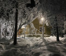 Итак, мы 19 ноября прилетели в Мурманск, успели немного погулять по городу, а вечером Женя забрала и отвезла нас в настоящую зимнюю сказку: лес, уютно-светящийся дом на берегу озера Волшебного. По дороге мы увидели свое первое северное сияние! А в доме нас ждали второй гид Маша и добрейшая собака Юнона. Затем мы все утроились в огромной гостиной с окнами в пол, сидели, ужинали, пили чай, знакомились, а за окном шел мягкий пушистый снег. Такое замечательного спокойного вечера у меня не было давно. И это идеально было перед дальнейшей насыщенной программой )