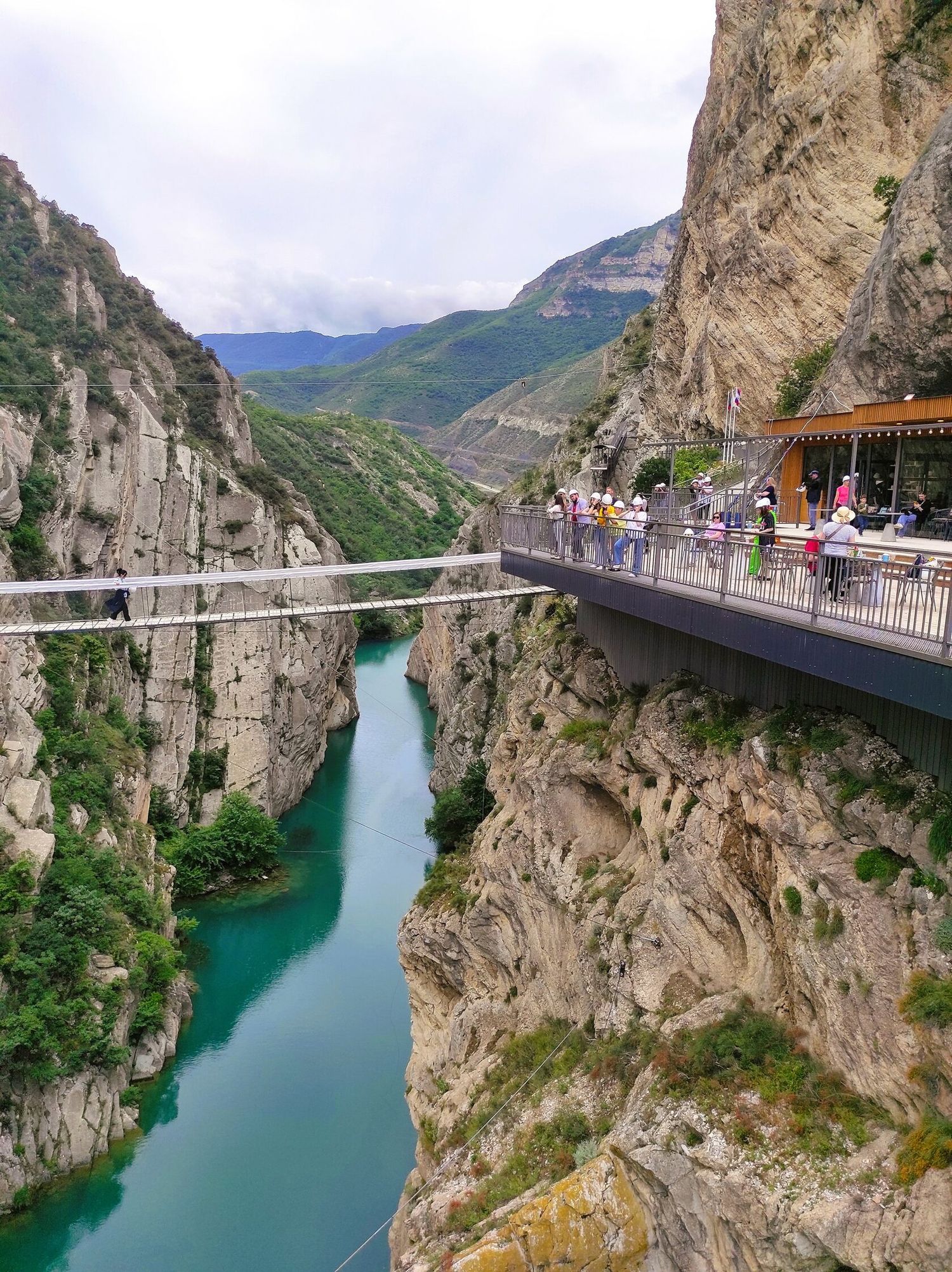 Далее мы посетим пещерный комплекс Нохъо. Он состоит из трех пещер, соединенных подвесным мостом через Сулакский каньон, смотровых, кафе и экстремальных развлечений. Здесь мы насладимся завораживающими видами вокруг.