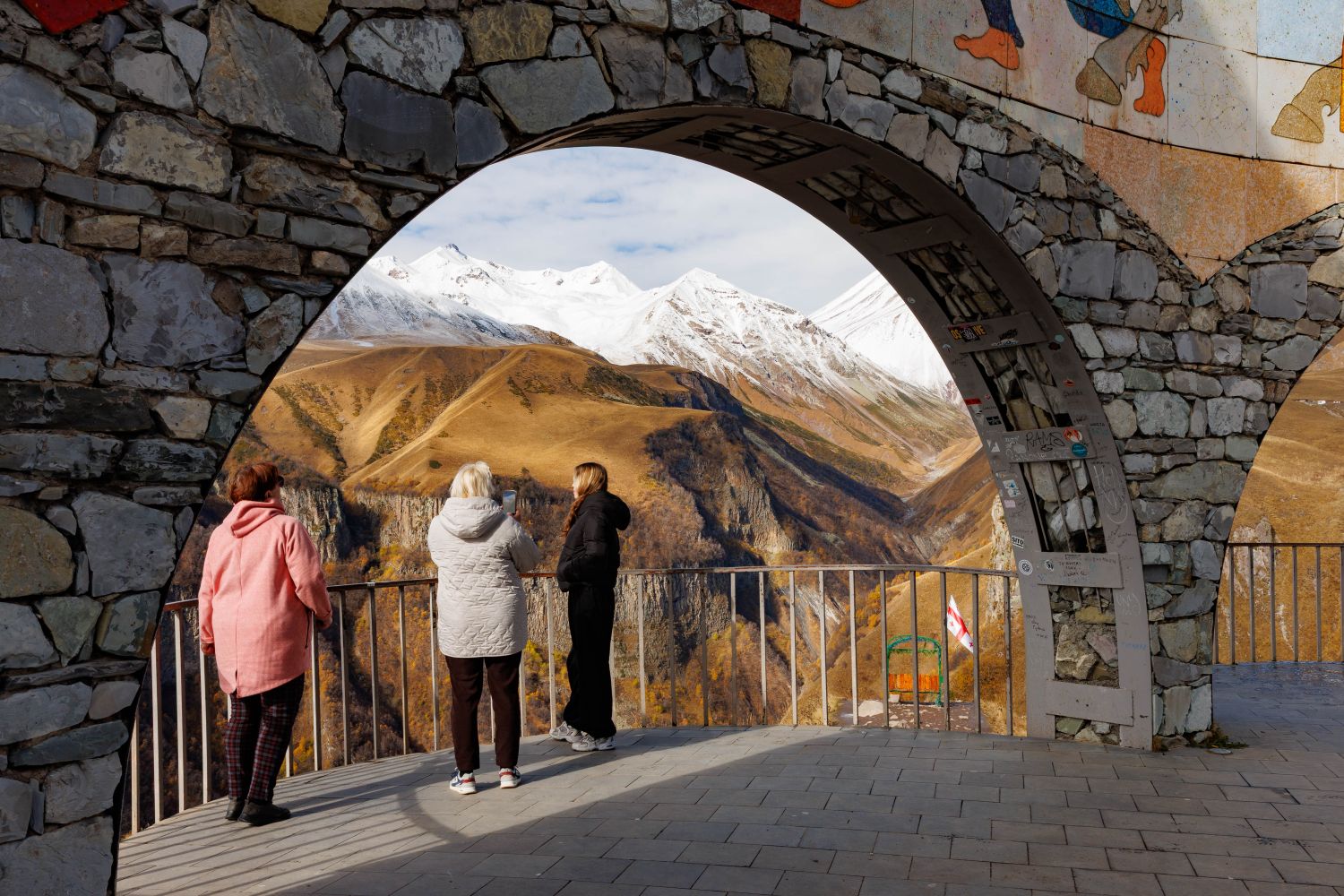 Остановитесь у Арки Дружбы народов, чтобы полюбоваться видами на Долину дьявола, заглянете в крепость Ананури, чтобы послушать царящую здесь тишину и насладиться бирюзой Жинвальского водохранилища.