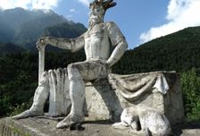 Первый - покровителю мужчин, путешественников и воинов - Уастырджи. Стальной всадник на высоте 22 метров вылетает из скалы - памятник крайне эффектный и неожиданный! Второй - осетинскому покровителю животных - Асфати.