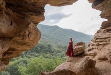 По пути мы заедем на небольшой нарзанный источник, про который знают местные. Здесь недалеко находится Сырная пещера. Она состоит из песчаника и по виду, действительно, напоминает пористый Маасдам. Попасть в пещеру можно с двух противоположных сторон: она сквозная, поэтому заблудиться или потеряться внутри не получится. Добираются до неё только редкие энтузиасты, однако туристы приходят сюда главным образом, чтобы сделать эффектные снимки на фоне необычных стен из песчаника.
