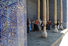 7. В целом программа проходила галопом - не успевали ни посмотреть, ни сфотографировать, как будто гиду всё время нужно было потом по своим делам. Взять ту же Шахи-зинду: мы провели там всего 45 минут, хотя это огромный и очень интересный, красивый комплекс. А керамическая мастерская, которой мы заменили один из пунктов программы и которая не то чтобы знаковая, заняла больше часа. Вот такие приоритеты.