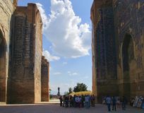 - Здесь сохранились останки монументального дворца Ак-Сарай, строительством которого руководил лично Тимур, созвав самых искусных зодчих и мастеров со всех уголков своих владений. Если хочешь убедиться в нашем могуществе взгляни на наши постройки! гласит надпись на портале дворца.