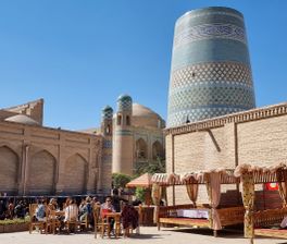 - Яркое начало: маршрут стартует в одном из самых необычных городов Узбекистана Хиве. Мы сразу погружаемся в мир атмосферных средневековых зданий из восточной сказки. Здесь внутри мощных крепостных стен целиком сохранилась древняя цитадель, каждое строение которой архитектурный памятник и отдельная достопримечательность.