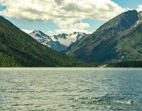 - — Заповедные Мультинские озера с фоном из снежных вершин
