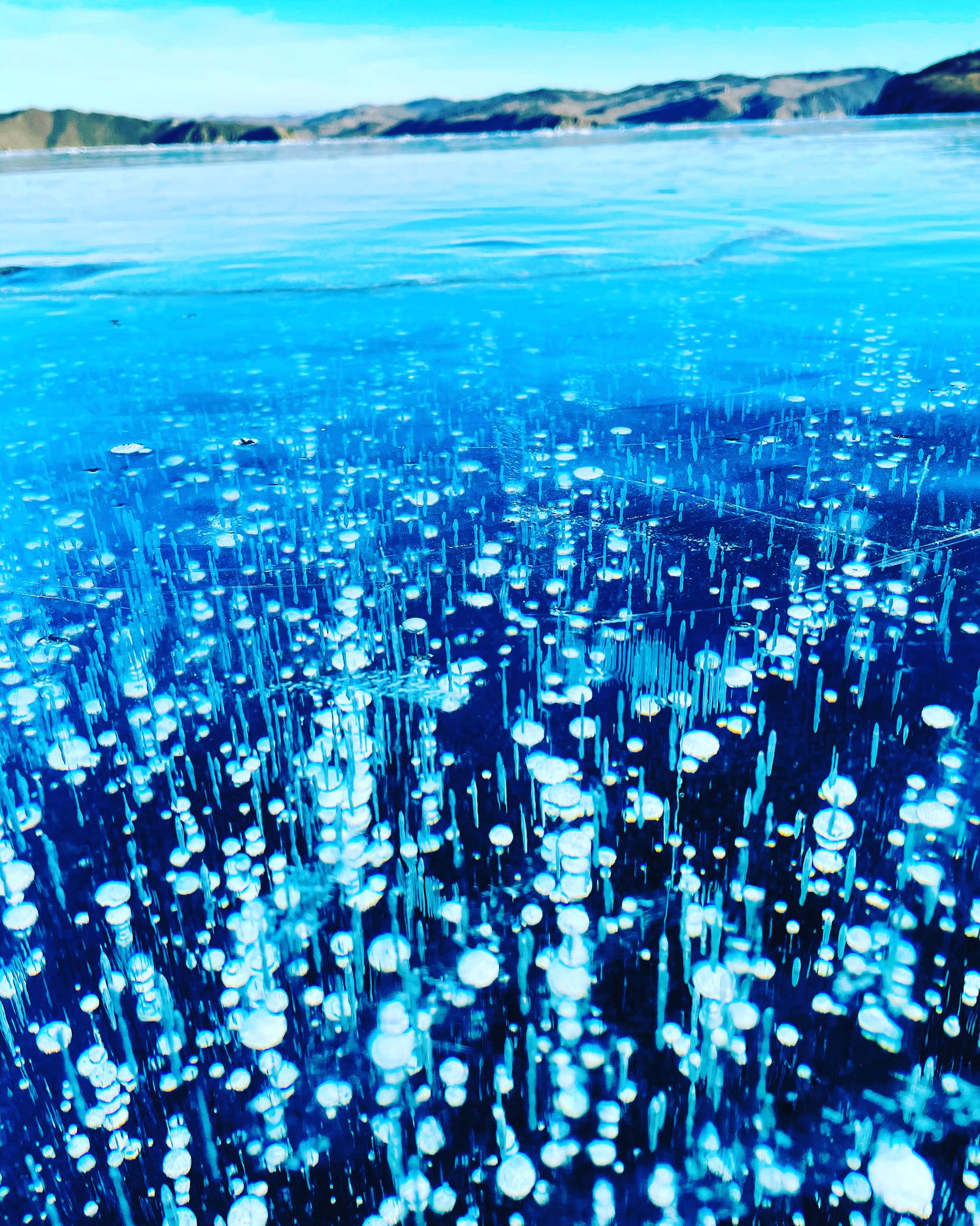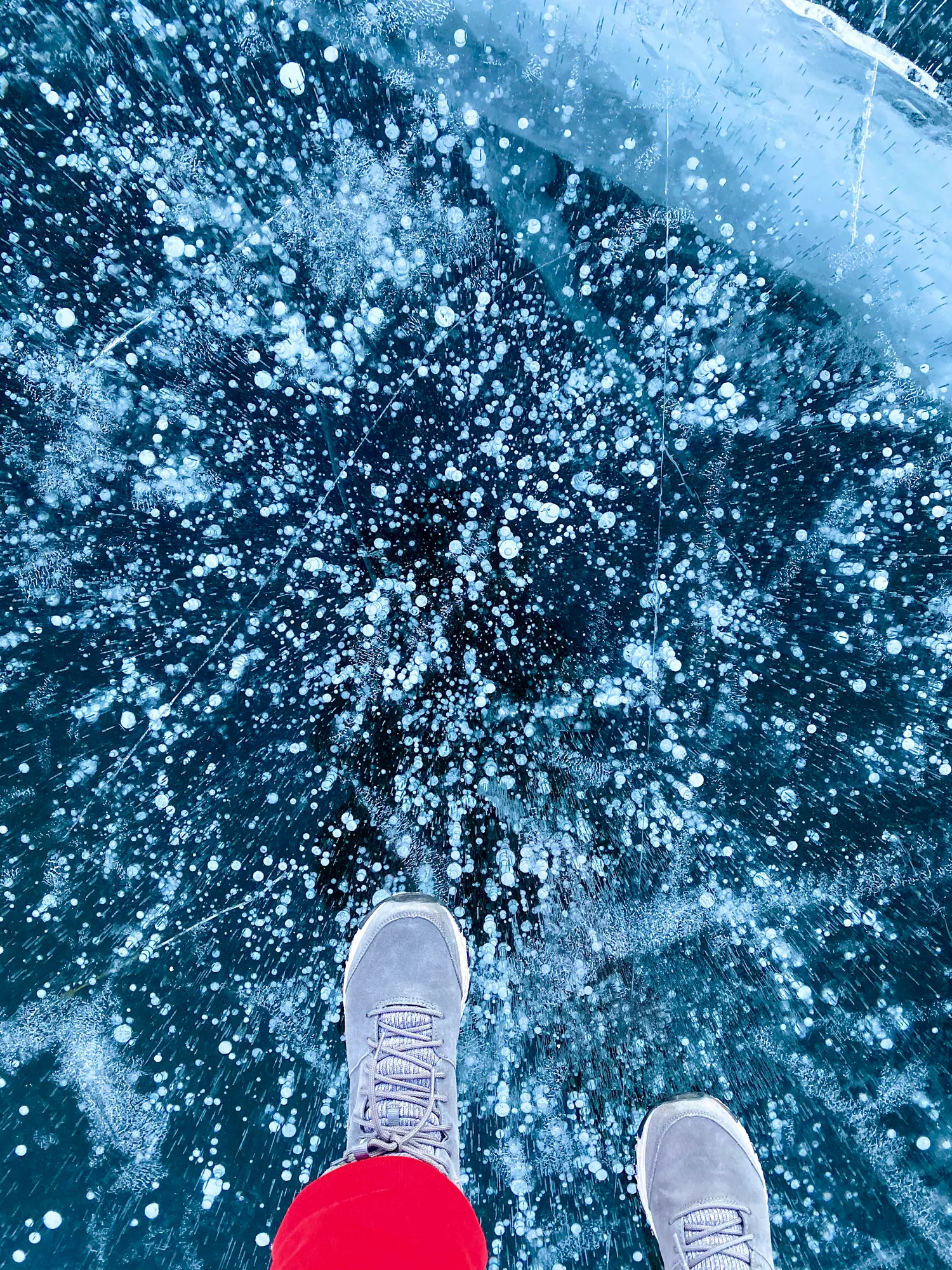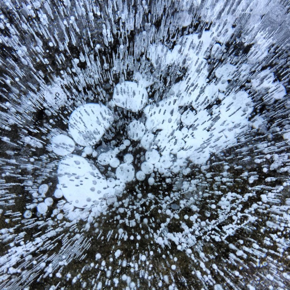 Загадочные пузыри, вмёрзшие в толщу льда.