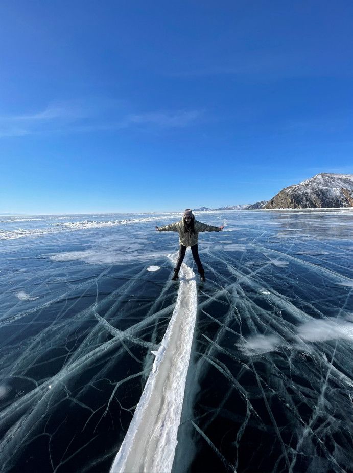А потом начинается магия прикосновения. Пролив Ольхонские ворота, суровый берег Ольхона... и наконец, вы стоите на нем. На Байкале. Под ногами — не просто лед, а гигантское зеркало, застывшее дыхание природы. Он такой прозрачный, что кажется, будто шагнешь — и полетишь в бездонную синеву. Как же прикоснуться к его священной воде? Ведь всё сковано метровым панцирем!