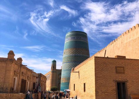 * Очутиться внутри минарета высотой в 47 метров и по винтовой лестнице подняться наверх, откуда открывается головокружительная понорама (Хива)