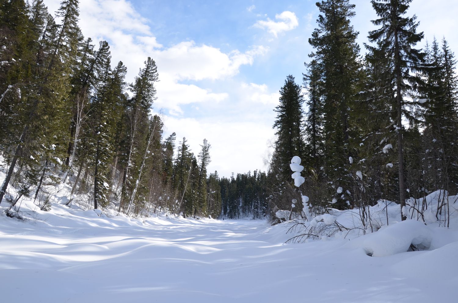 - Катание по пухлому снегу