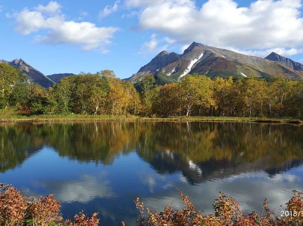 Сентябрь, по мнению многих, является самым красивым временем на Камчатке. В это время горная тундра окрашивается в самые яркие цвета, а вулканы одеваются в белые шапки. При этом в сентябре стоят еще достаточно теплые дни эта пора считается камчатским бархатным сезоном.