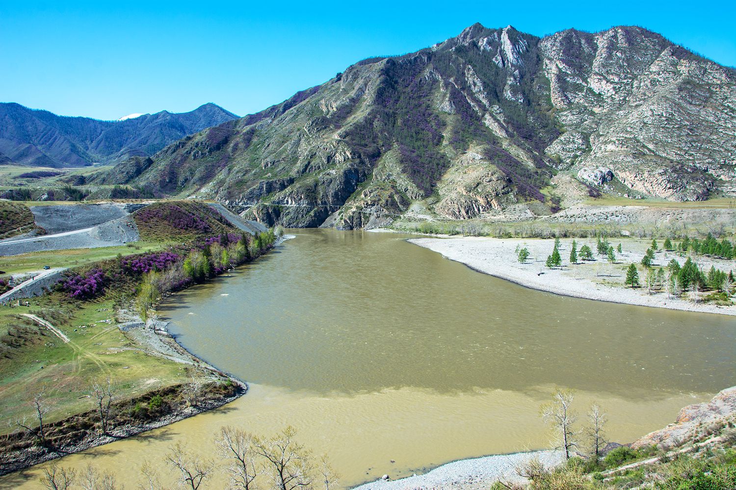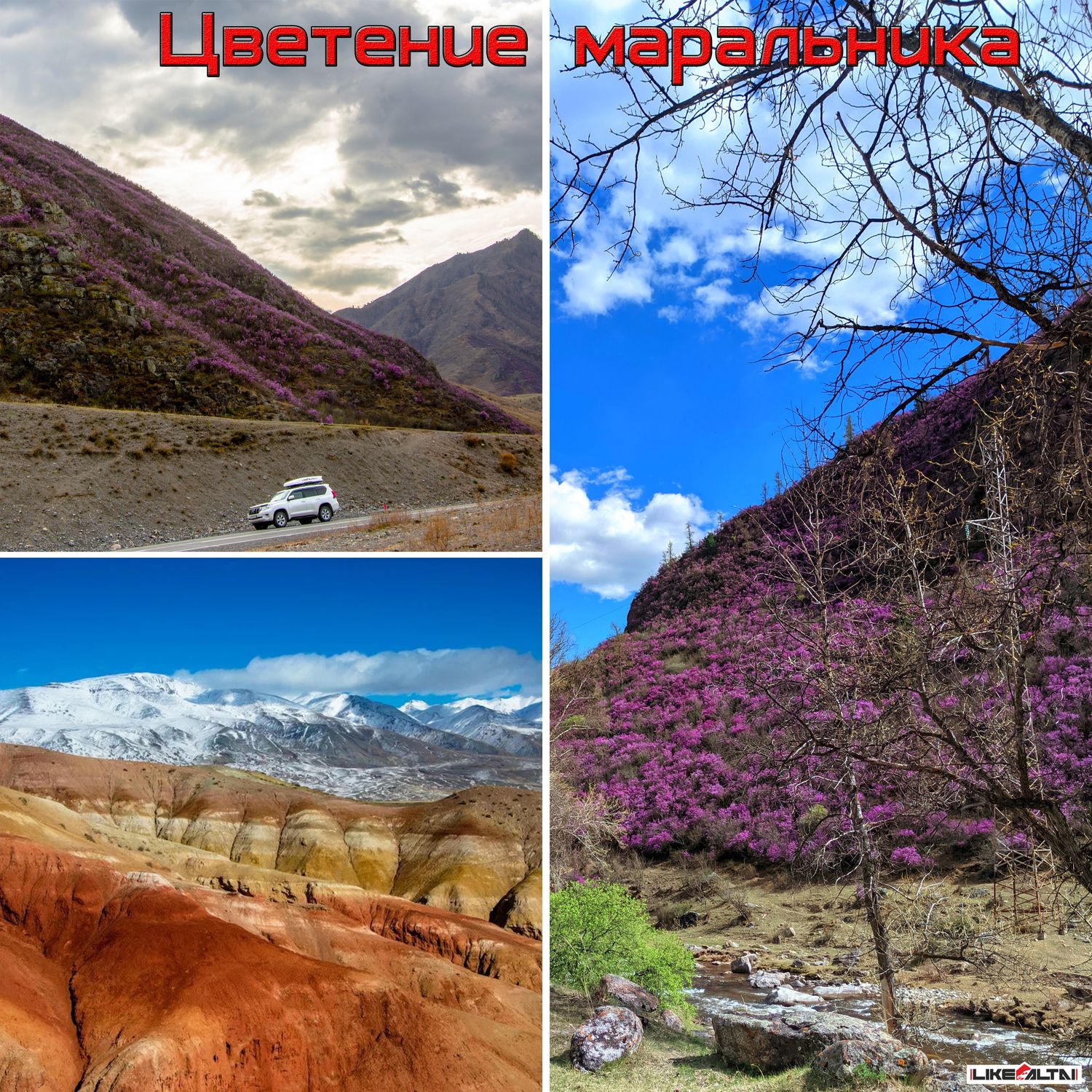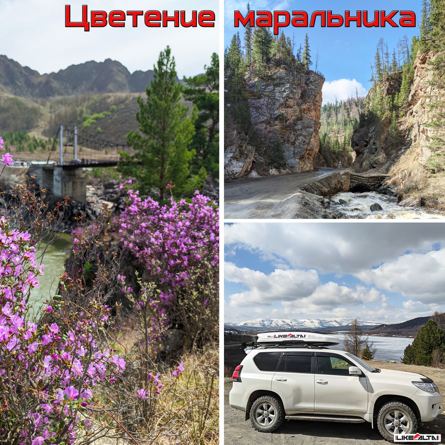- В этой поездке мы увидим не только усыпанные цветами фиолетовые горы Алтая, но и снежные вершины, потрясающие по крутизне перевалы, бескрайние степи, величественную тайгу с могучими кедрами и замёрзшие водопады.
