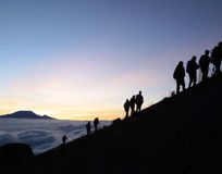 Хотя все наши маршруты восхождения являются частными, на горе Меру принято объединять несколько туристических групп на нижних склонах.