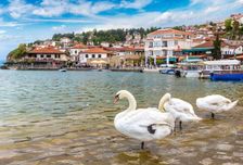 Жемчужина Македонии — Охридское озеро, окруженное потрясающей красоты горами, —является одним из самых красивых и чистых в Европе.
