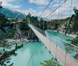 Первым делом мы отправимся на знакомство с главной рекой Алтая - красавицей Катунью. Мы прогуляемся по подвесному вантовому мосту, соединяющему республику Алтай и Алтайский край между собой.