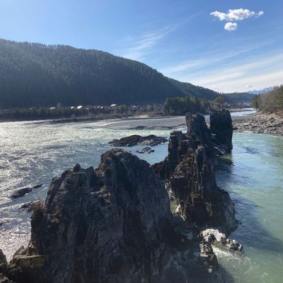 Прогуляемся по сосновому лесу и увидим памятник художнику и философу Н.К. Рериху. Также здесь находится грот Ихтиандра и несколько смотровых площадок с обширным видом на Катунь.