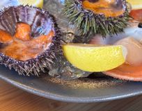 • Из Баренцева моря: гребешки на устричной траве, мясо краба в хитине, северная креветка, ёж или кальмар.