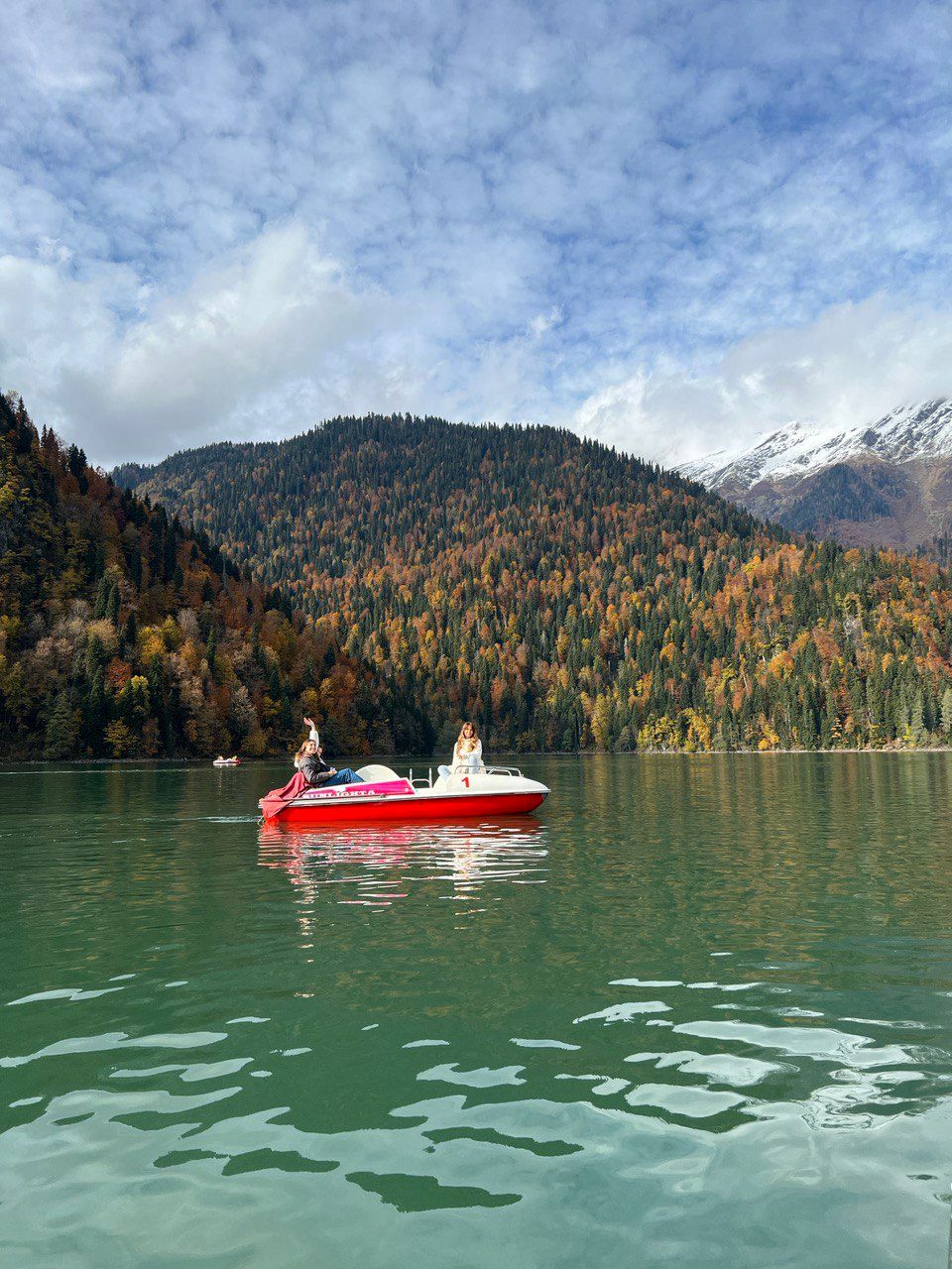 Встречаемся в аэропорту Сочи до 11:30 и выезжаем на границу с Абхазией, там пересаживаемся на комфортабельный внедорожник и едем в горы! По пути сделаем остановку на озере Рица, чтобы посмотреть на него с шикарной стороны. Ты прокатишься на катере по бирюзовой глади озера, рассмотришь все самые шикарные виды гор и полюбуешься осенними красками, конечно же сделаешь множество фото. Здесь же тебя ждет пикник с хачапуром и видом на осеннее озеро Рица.