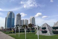 • Перейдя по мосту через реку Сунжа, мы окажемся в современном квартале Грозный Сити и поднимемся на вертолетную площадку бизнес-центра, чтобы посмотреть на город с высоты 115 метров.