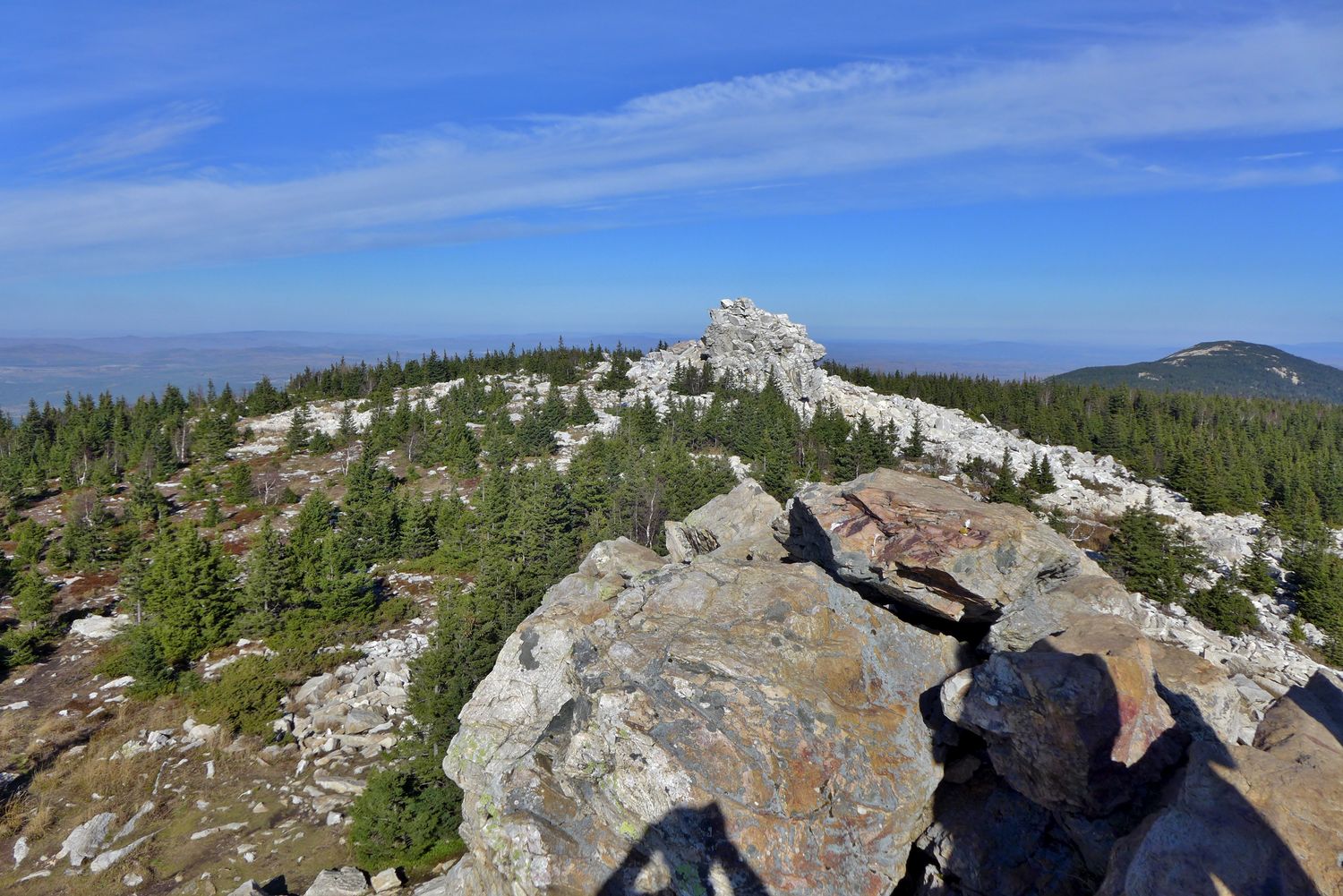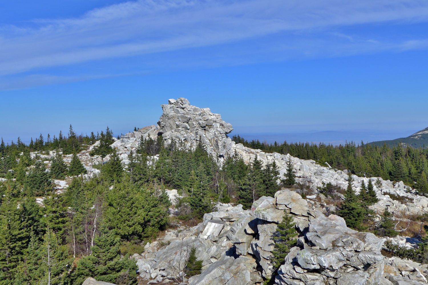 Чашковское каменное городище - горный хребет в сосновом бору, с сотнями гранитных скальных останцев причудливой формы. После отдыха на вершине пеший переход обратно к машине.