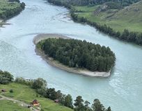 Реку Катунь — царицу и хозяйку Алтая. Жемчужно-изумрудная несёт она свои воды по каменной дороге с горы Белуха до Северного Ледовитого океана, объединяясь с Бией и образуя могучую Обь.