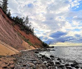 Еще одно из чудес Вологодской земли, которое нам предстоит увидеть - Андом-гора, Андомский геологический разрез, находится в охраняемом природном комплексе Онежский. Сама гора представляет собой необычно высокий для этих мест утес, 85 метров над уровнем моря, с высоты которого открываются изумительные панорамы Онежского озера. Но ценность горы не только и не столько в этих видах. Здесь на поверхность выходят девонские отложения, возраст которых насчитывает около 400 миллионов лет! Среди них можно увидеть песчаники и пески самых разных цветов: красные, зеленые, фиолетовые...