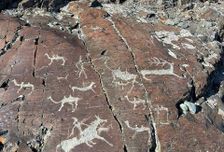 Долина Елангаш, петроглифы Елангаша. Наскальных рисунков там, не сотни, как мы привыкли, а тысячи. В древности по долине Елангаша проходил торговый Шелковый путь в Монголию и Китай. Было задокументировано около 30 000 петроглифов, которые мы сможем с вами увидеть.