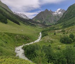 Встречаемся и около 9 утра отправляемся в наше путешествие. Сделаем остановку на заправке, познакомимся, выпьем кофе, и продолжим путь в сторону аула Верхний Учкулан. Большая часть нашего первого дня пройдёт в дороге, по желанию сможем посетить термальные источники «Суворовские ванны» (билет - 500 руб.). Пообедаем в кафе с национальной кухней или возьмем с собой горячие лепёшки с сыром и зеленью и устроим привал на открытом воздухе. Остановимся на реке Кубань, самой протяжённой реке Кавказа, совершим небольшую прогулку, послушаем шум реки и спустимся к минеральному источнику.