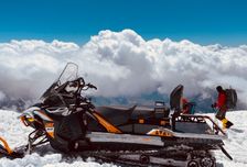 - подъем на канатке на Эльбрус до высоты 3850 метров над уровнем моря, а также возможность подняться на снегоходе на высоту 5100 метров над уровнем моря