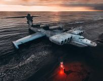 Каспийский берег и экраноплан Лунь;
