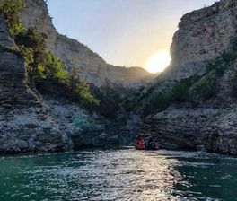 Наша следующая остановка Сулакский каньон. Здесь лазурное небо встречается с задумчивыми горами и переходит в нежную бирюзу реки. Чтобы глубже прочувствовать всю эту красоту мы с ветерком прокатимся с ветерком, да песнями на катере по Чиркейскому водохранилищу.
