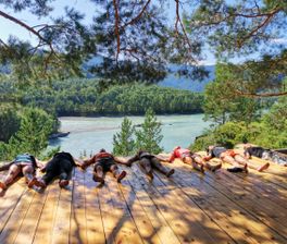Будем жить и практиковать на берегу горной реки Катунь. В окружении гор и уникальной природы Алтая.
