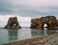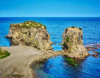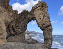 Мыс Великан - одно из самых красивых и удивительных морских побережий Сахалина. Скальные арки мыса Великан одна из жемчужин Сахалина и его визитная карточка. Этот памятник природы расположен в Корсаковском районе на южном побережье Охотского моря. Причудливые скалы, в очертаниях которых кто-то видит льва, выходящего из моря, кто-то таинственный замок, а кто-то голову богатыря-великана, задремавшего у кромки воды, высятся вдоль всего побережья от мыса Птичий до мыса Великан.