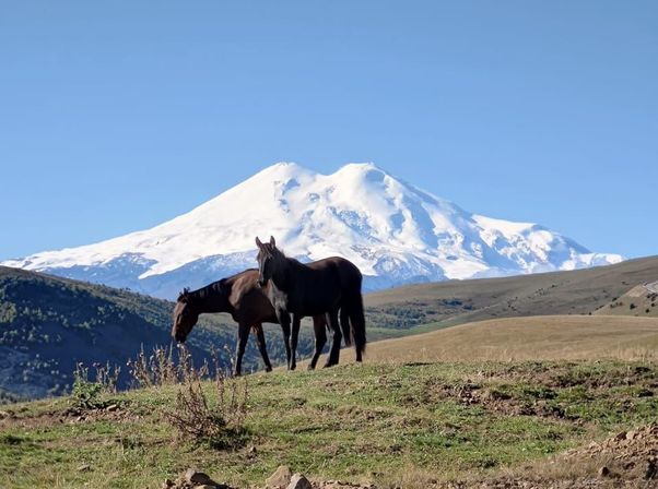 - Высокогорный перевал Гум-баши с видом на Эльбрус
