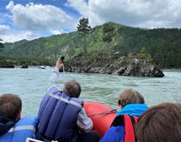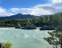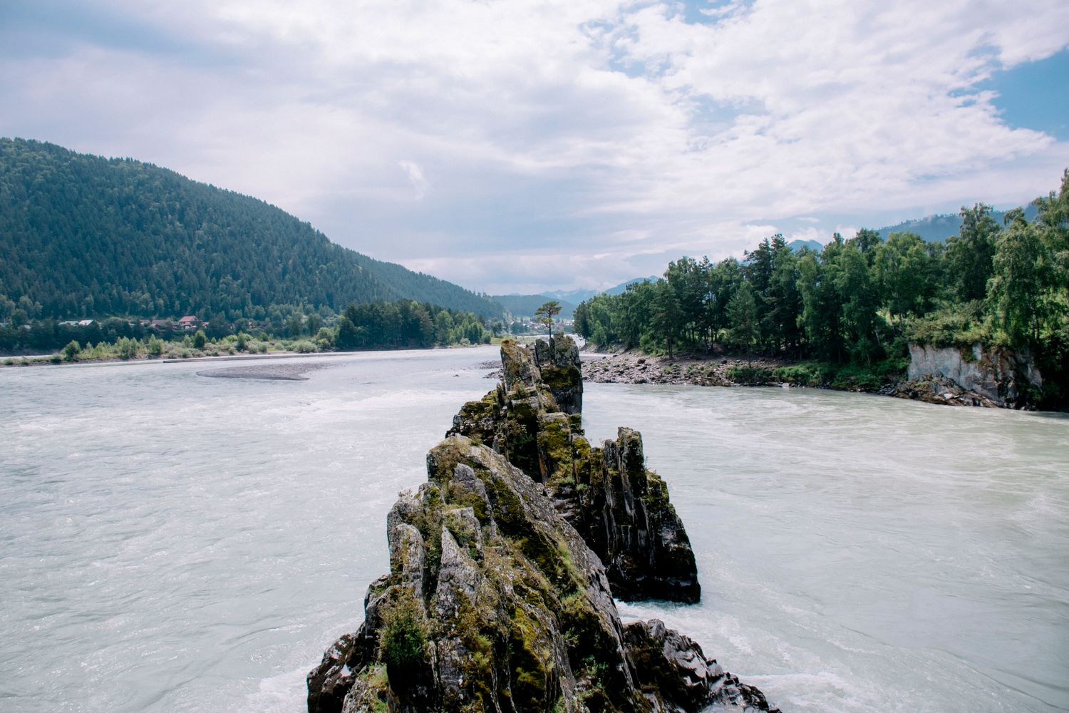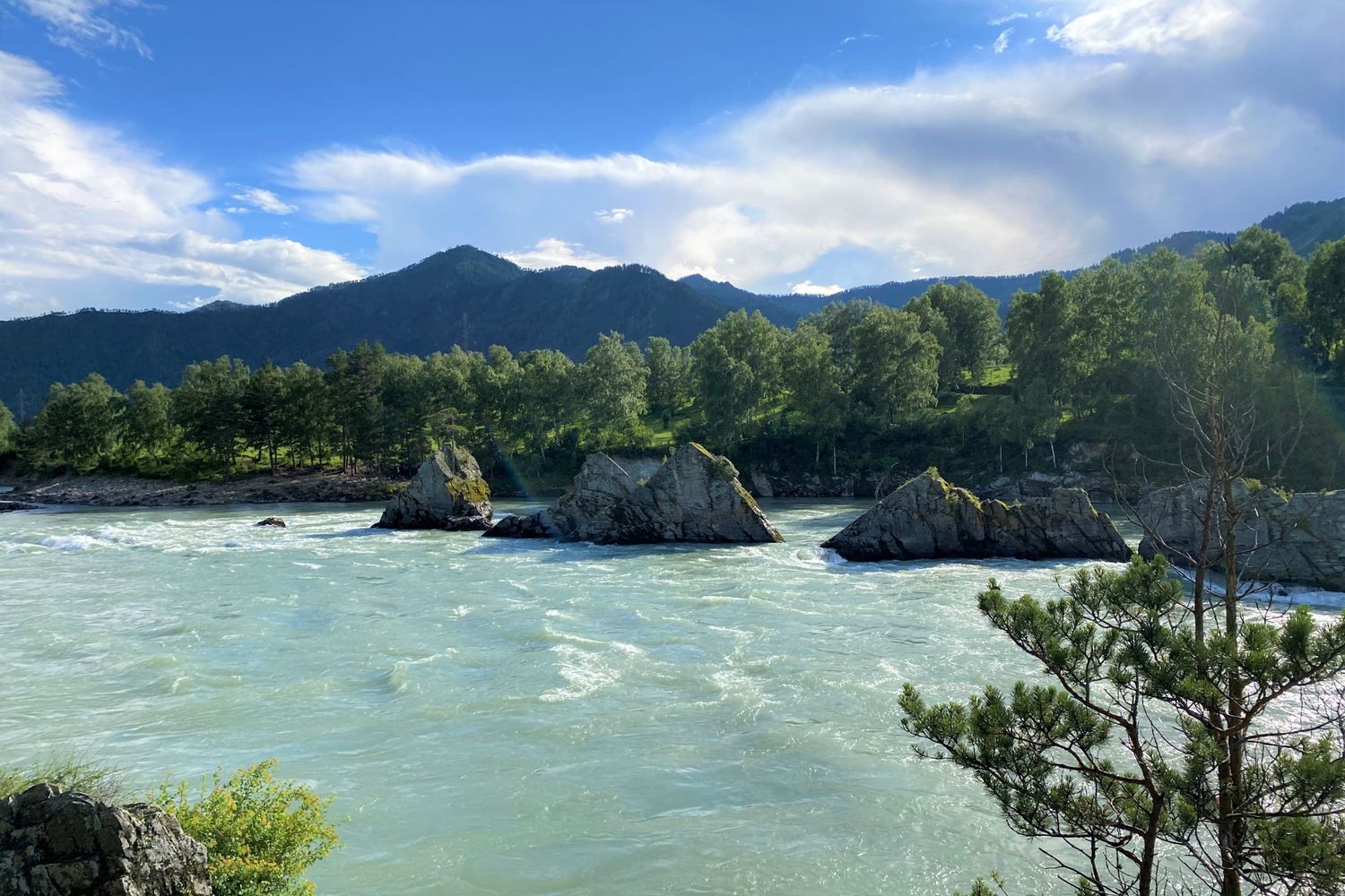 Посмотрим на ряд острых скал – Зубы Дракона, которые находятся посреди реки Катунь.