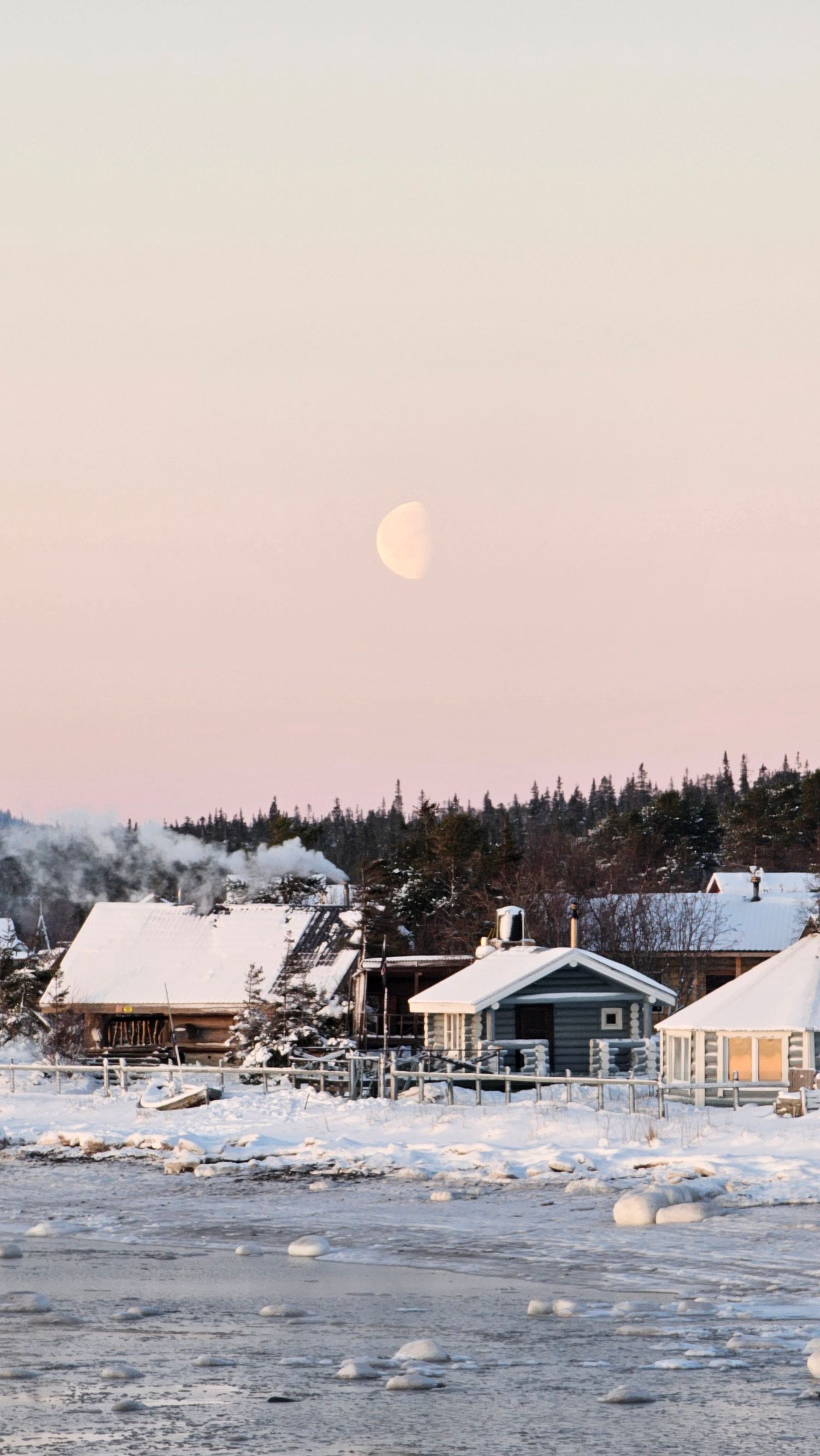 Ночная прогулка по заснеженному посёлку, рассматриваем старые поморские домики и ловим Северное Сияние.