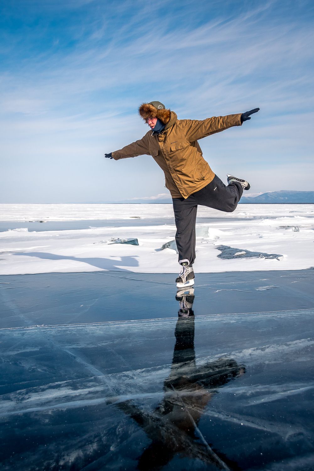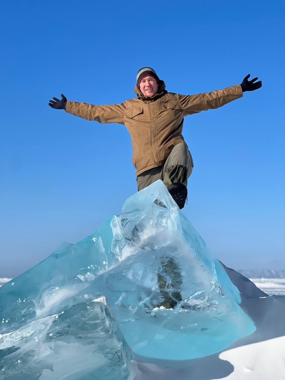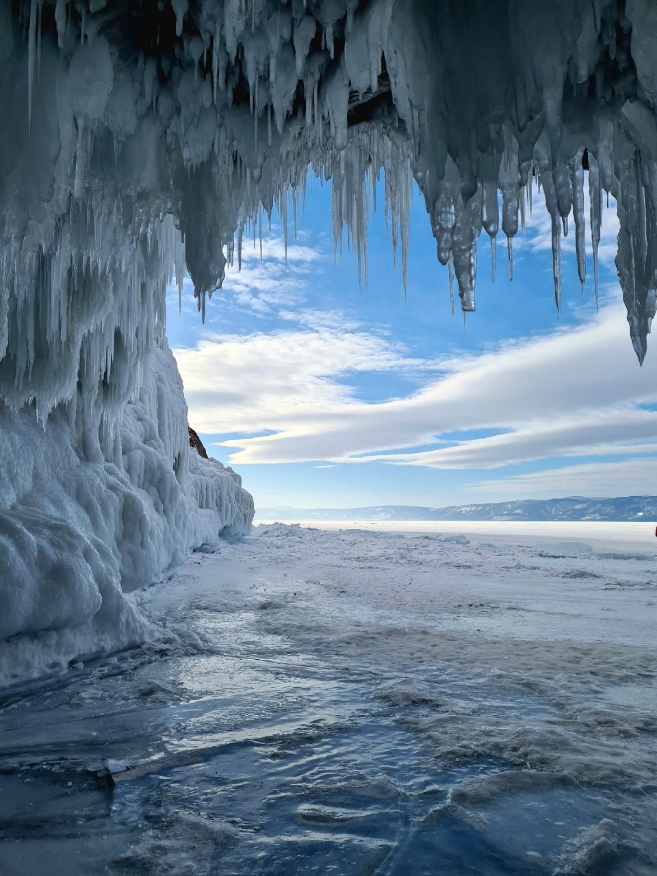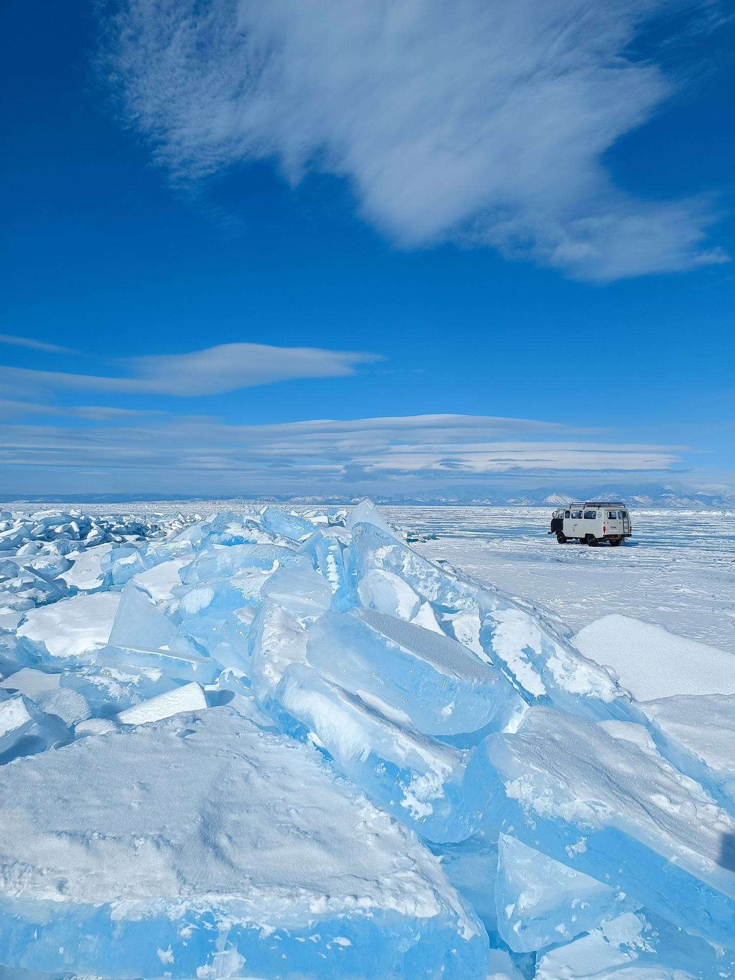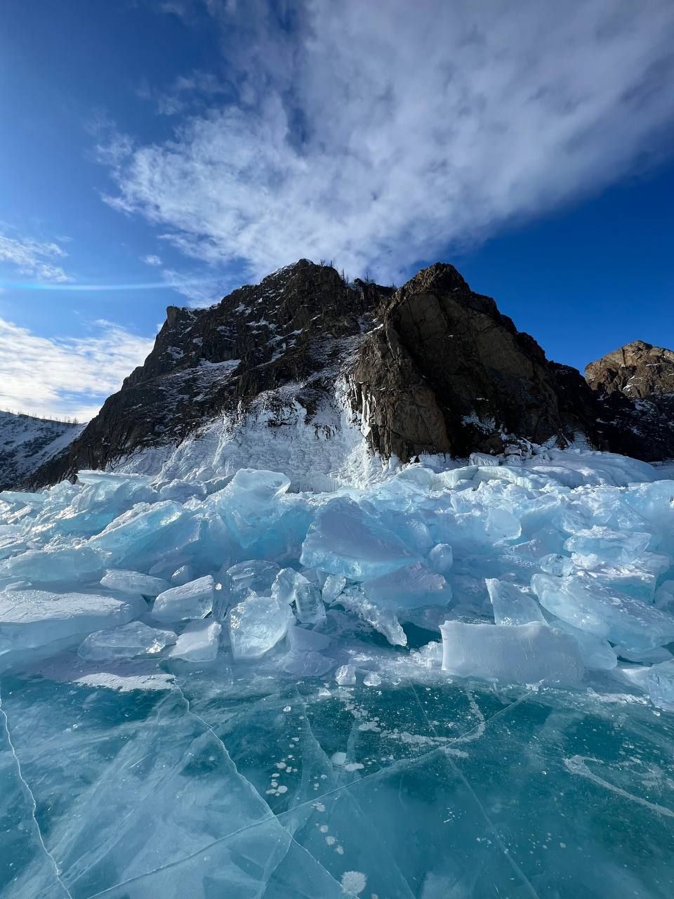Вселенная льда. Вы ступите на хрустальную гладь самого древнего и глубокого озера планеты. Увидите, как ветер и вода создали фантастические гроты и наплески, похожие на застывшую архитектуру неведомой цивилизации. Байкальский лёд под ногами — это и зеркало в небо, и мозаика из бирюзовых трещин, и бесконечная мощь стихии.