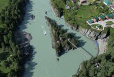Далее через Козью тропу мы отправляемся на Чемальскую Гэс. Насладимся красивыми видами и увидим, как темные воды Чемала сливаются с бирюзовой водой Катуни. Желающие смогут прокатиться на зип-лайне или на моторафтинге.