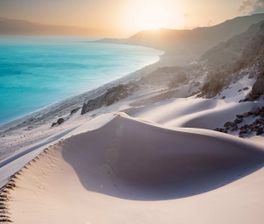 - любоваться гигантскими дюнами, спускающимися прямо в океан
