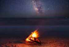 - Костер на берегу, под ночным небом